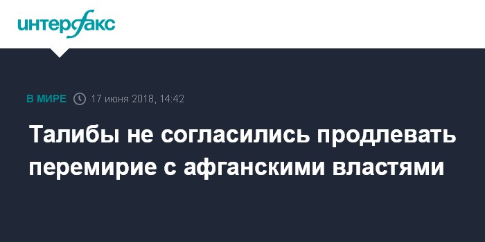 Москва. 17 июня. INTERFAX.RU - Мятежники из движения "Талибан" (запрещено в РФ) объявили в воскресенье, что не собираются продлевать режим перемирие с властями Афганистана, передает телеканал Sky News.