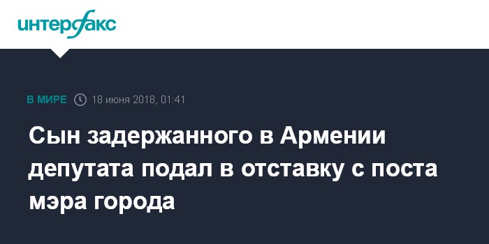 Сын задержанного в Армении депутата подал в отставку с поста мэра города