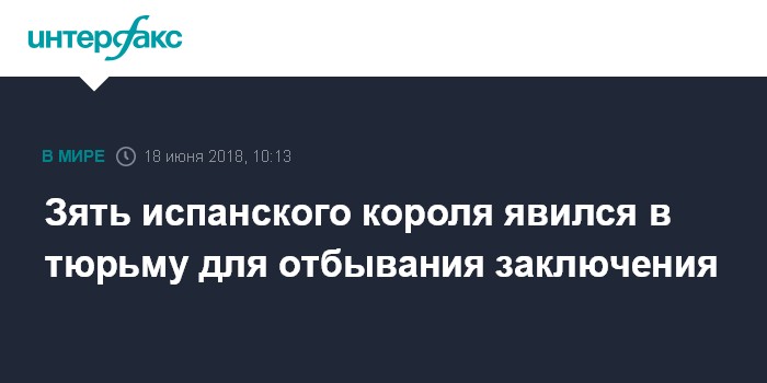 Москва. 18 июня. INTERFAX.RU - Зять испанского короля, муж инфанты Кристины Иньяки Ундаргарин явился в понедельник в тюрьму провинции Авила, сообщает в понедельник газета El Pais.