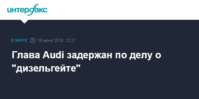Москва. 18 июня. INTERFAX.RU - Гендиректор концерна Audi Руперт Штадлер задержан по делу о фальсификации данных о вредных выбросах дизельных двигателей, сообщают немецкие СМИ.
