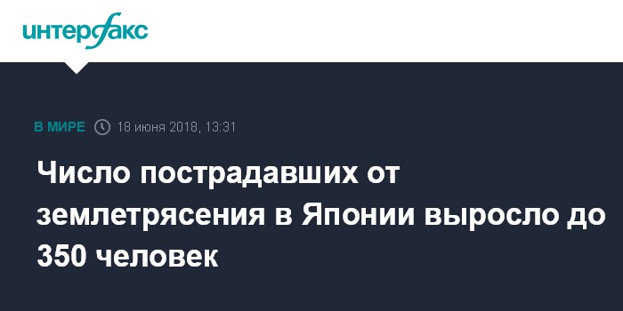 Москва. 18 июня. INTERFAX.RU - Порядка 350 человек пострадали в результате землетрясения на западе Японии, сообщает в понедельник телеканал NHK.