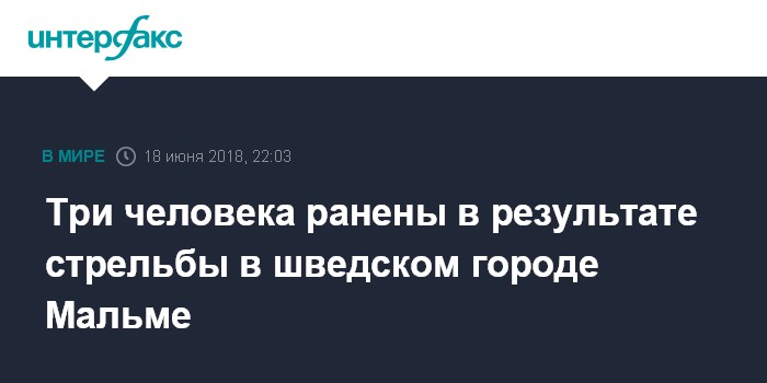 Москва. 18 июня. INTERFAX.RU - По меньшей мере, три человека получили ранения в понедельник в результате стрельбы в шведском городе Мальме, сообщает местный телеканал SVT со ссылкой на полицию.