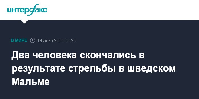 Москва. 19 июня. INTERFAX.RU - Два человека стали жертвами открытой неизвестным стрельбы в центре шведского города Мальме, сообщила местная полиция. Оба умерли в больнице.