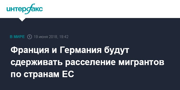 Москва. 19 июня. INTERFAX.RU - Париж и Берлин намерены работать как на двустороннем, так и на многостороннем уровне над сдерживанием расселения мигрантов по странам ЕС, заявил во вторник президент Франции Эмманюэль Макрон.