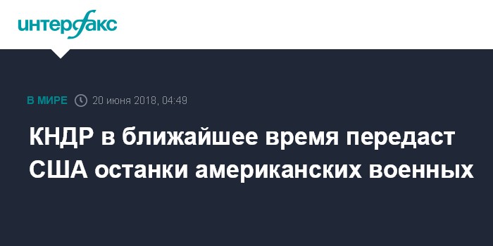 Москва. 20 июня. INTERFAX.RU - Соединенные Штаты надеются в ближайшее время получить от КНДР останки около 200 американских военнослужащих, погибших в ходе Корейской войны 1950-53 годов, сообщил телеканал CNN.