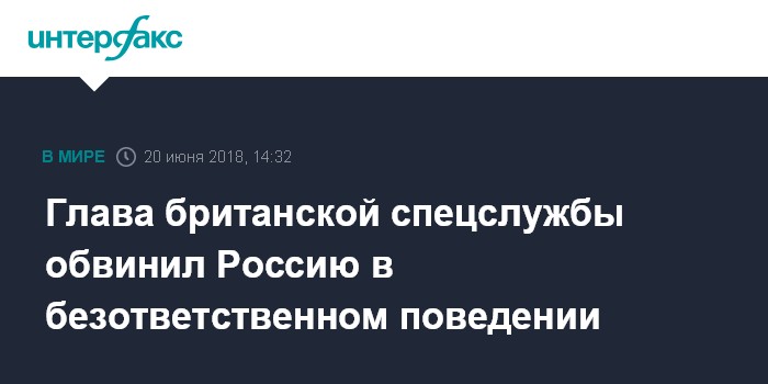 Глава британской спецслужбы обвинил Россию в безответственном поведении