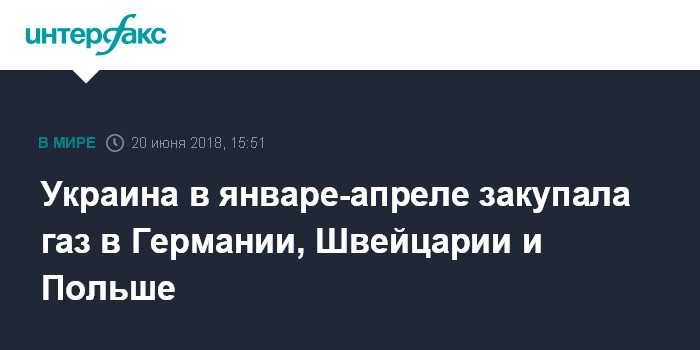 Москва. 20 июня. INTERFAX.RU - Украина в январе-апреле 2018 года импортировала 2 млрд 155,199 млн куб. м природного газа на общую сумму $613,13 млн, в т.ч. в апреле - 562,833 млн куб. м на $174,924 млн, свидетельствуют данные Государственной службы статистики (Госстат).