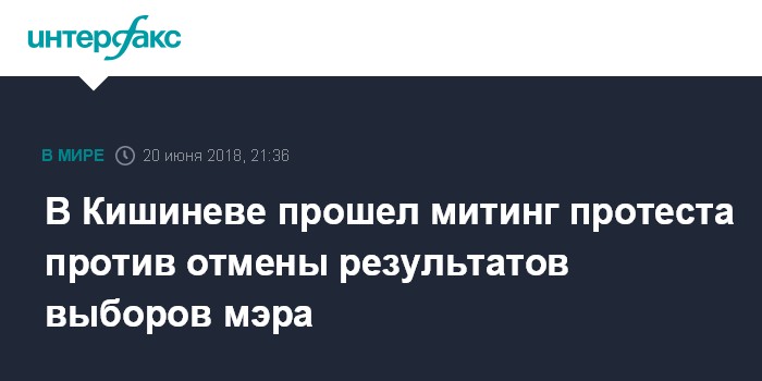 Москва. 20 июня. INTERFAX.RU - В центре Кишинева завершился митинг протеста против решения суда об отмене результатов выборов мэра молдавской столицы, передает корреспондент "Интерфакса".