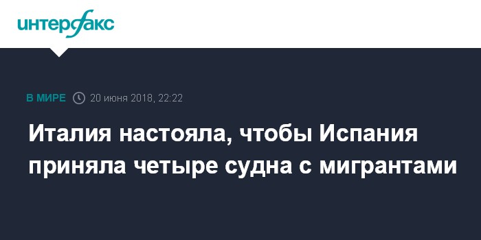 Москва. 20 июня. INTERFAX.RU - Министр иностранных дел Италии Маттео Сальвини в среду обвинил Мадрид в невыполнении своих обязательств по приему мигрантов и заявил, что следующие четыре судна с мигрантами должны быть направлены в Испанию, сообщили европейские СМИ.