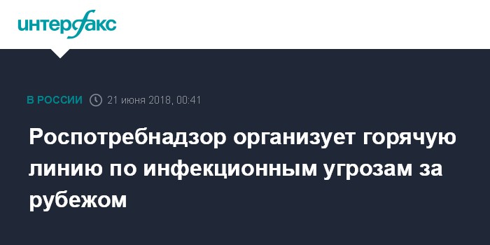 Москва. 21 июня. INTERFAX.RU - Роспотребнадзор в разгар отпускного сезона с будущего понедельника организует всероссийскую "горячую линию" по туристическим услугам и ситуации с инфекционными угрозами за рубежом, сообщил в пресс-службе ведомства в четверг.