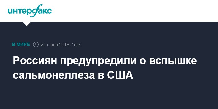 Москва. 21 июня. INTERFAX.RU - Роспотребнадзор предупредил россиян о вспышке сальмонеллеза в США, случаи заболевания зафиксированы в 31 штате.