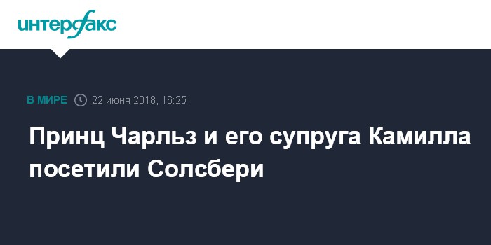 Москва. 22 июня. INTERFAX.RU - Британский принц Чарльз с супругой герцогиней Корнуольской Камиллой посетил город Солсбери, говорится в пятницу в твиттер-аккаунте королевской резиденции Кларенс-хаус.