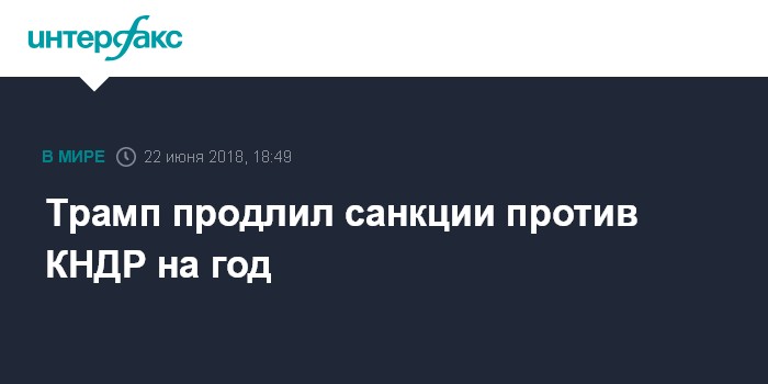 Москва. 22 июня. INTERFAX.RU - Президент США Дональд Трамп в пятницу продлил санкции против Северной Кореи на один год.