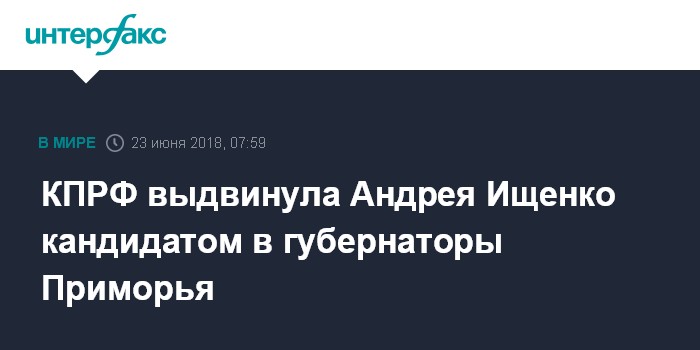 Москва. 23 июня. INTERFAX.RU - Депутат Законодательного собрания Приморья Андрей Ищенко пойдет на выборы губернатора края от регионального отделения КПРФ.