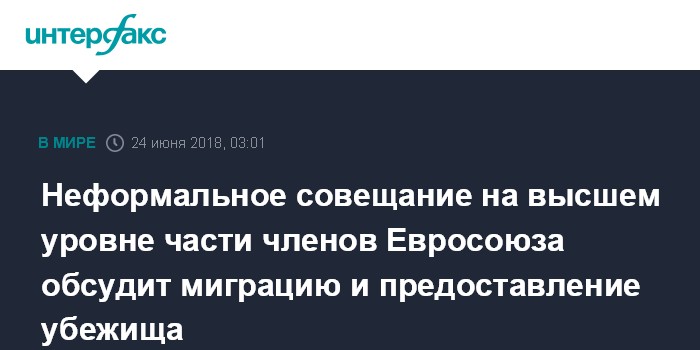 Москва. 24 июня. INTERFAX.RU - Руководители ряда стран ЕС соберутся в воскресенье в Брюсселе на встречу, посвященную проблематике миграции и предоставления убежища в Евросоюзе.