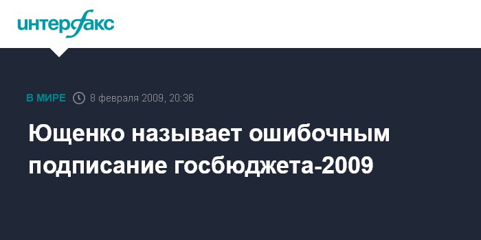 Киев. 8 февраля. ИНТЕРФАКС-УКРАИНА - Президент Украины Виктор Ющенко называет подписание государственного бюджета на 2009 год своей ошибкой.