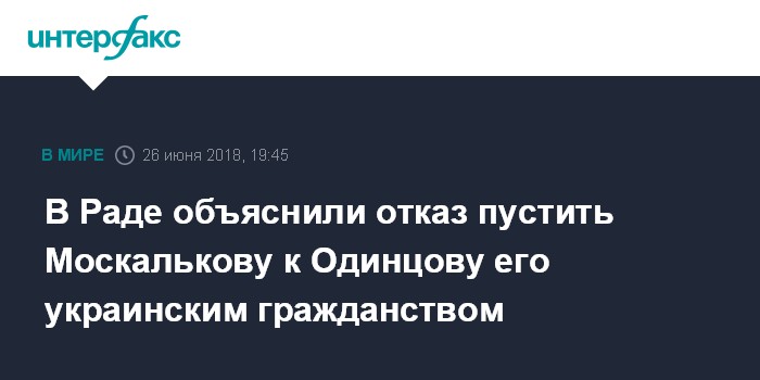 Москва. 26 июня. INTERFAX.RU - Уполномоченный Верховной Рады Украины по правам человека Людмила Денисова сообщила российской коллеге Татьяне Москальковой, что посещение находящегося в СИЗО Киева Максима Одинцова невозможно, так как он является гражданином Украины.