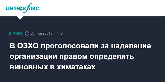 Москва. 27 июня. INTERFAX.RU - Участники спецсессии Организации по запрещению химического оружия (ОЗХО) проголосовали в поддержку проекта резолюции Великобритании о расширении мандата ОЗХО, сообщает в среду в твиттере постпред Великобритании при ОЗХО Петер Уилсон.