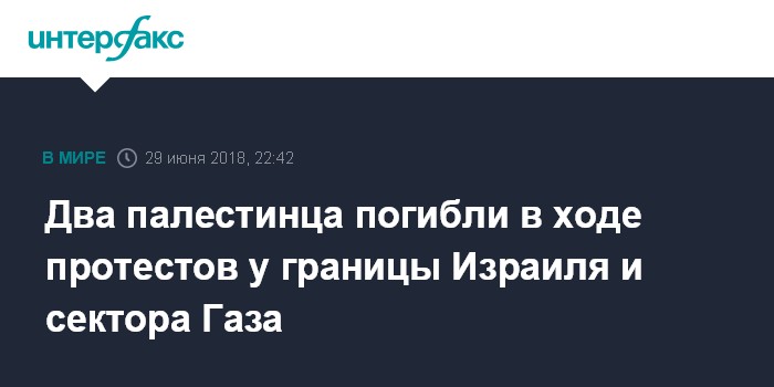 Москва. 29 июня. INTERFAX.RU - В ходе пятничных акций протеста протестов на границе Израиля и сектора Газа скончались два палестинца, сообщила в пятницу Times of Israel со ссылкой на Минздрав сектора Газа.