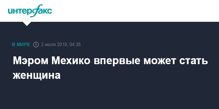 Москва. 2 июля. INTERFAX.RU - Клаудия Шейнбаум, представляющая коалицию левых сил, избрана мэром Мехико, свидетельствуют данные экзит-полов состоявшихся в стране всеобщих выборов.