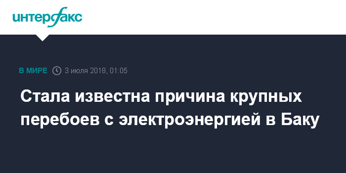 Стала известна причина крупных перебоев с электроэнергией в Баку