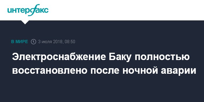 Электроснабжение Баку полностью восстановлено после ночной аварии