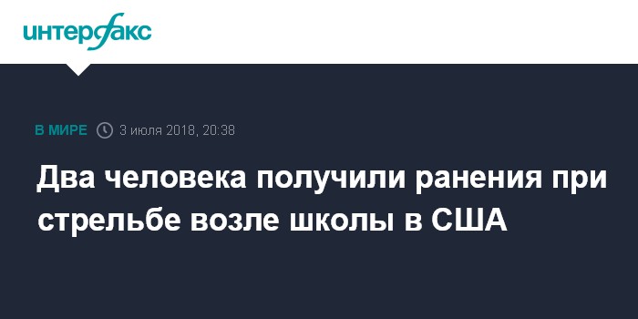 Москва. 3 июля. INTERFAX.RU - Два человека получили ранения во вторник утром в результате стрельбы, которая произошла на игровой площадке возле начальной школы в американском городе Канзас-сити (штат Канзас), передает телеканал ABC.