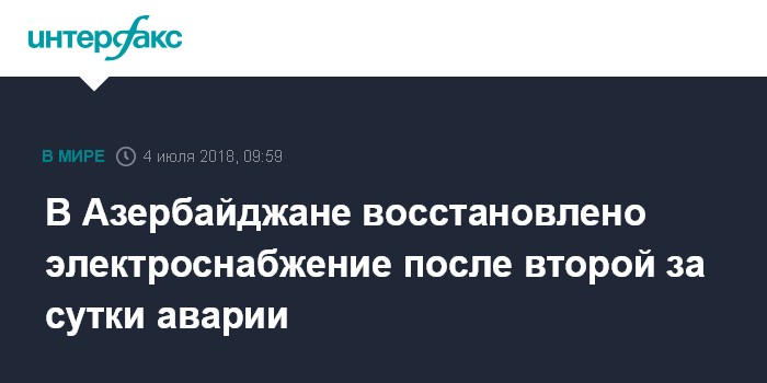 Как сообщалось, в ночь на 3 июля вышел из строя трансформатор на одной из подстанций Азербайджанской ТЭС. Основной причиной аварии, по первичным оценкам Минэнерго, стало размыкание на подстанции, что нарушило нормальную деятельность всей электростанции. По данным Минэнерго, эти проблемы были вызваны аномальной жарой и ростом потребления электроэнергии. В результате весь Азербайджан на несколько часов остался без света.