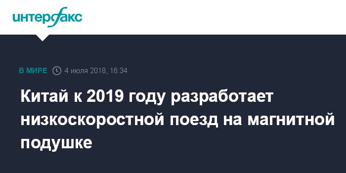Москва. 4 июля. INTERFAX.RU - Ведущий китайский производитель подвижных составов CRRC Changchun Railway Vehicles разрабатывает средне- и низкоскоростной поезд на магнитной подушке (маглев) нового поколения.