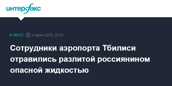 Москва. 4 июля. INTERFAX.RU - Семь сотрудников международного аэропорта Тбилиси попали в больницу с симптомами отравления после разлива опасной жидкости гражданином России, их состояние стабильное и жизнь вне опасности, сообщают в среду местные СМИ.