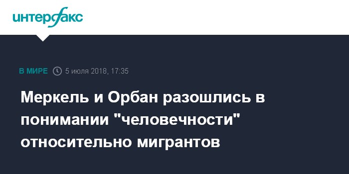 Москва. 5 июля. INTERFAX.RU - Канцлер ФРГ Ангела Меркель и ее венгерский коллега Виктор Орбан, обсуждая миграционный кризис, высказали разные точки зрения относительно понятия "человечность".