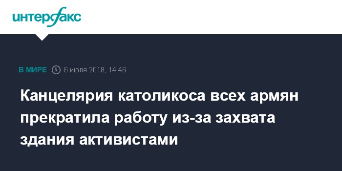 Москва. 6 июля. INTERFAX.RU - Канцелярия католикоса всех армян в Эчмиадзинском монастыре прекращает свою работу из-за захвата демонстрантами ее здания.
