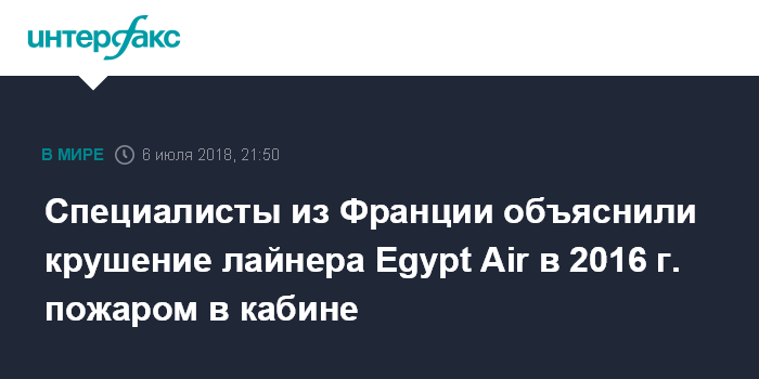 Специалисты из Франции объяснили крушение лайнера Egypt Air в 2016 г. пожаром в кабине