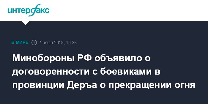 Минобороны РФ объявило о договоренности с боевиками в провинции Деръа о прекращении огня