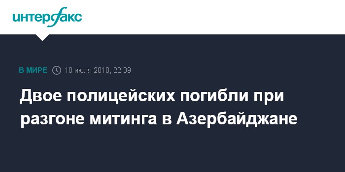 Москва. 10 июля. INTERFAX.RU - В ходе акции протеста в Гяндже (второй по величине город Азербайджана) погибли два офицера полиции, сообщило МВД Азербайджана.