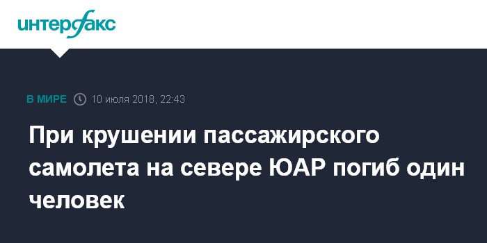 При крушении пассажирского самолета на севере ЮАР погиб один человек