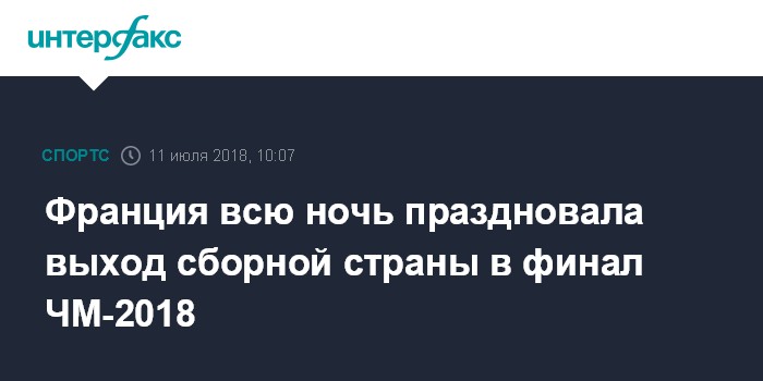 Москва. 11 июля. INTERFAX.RU - Десятки тысяч французов в разных городах страны вышли в ночь на среду на улицы, чтобы отпраздновать победу сборной страны над сборной Бельгии в полуфинальном матче Чемпионата мира по футболу-2018, сообщают в среду местные СМИ.