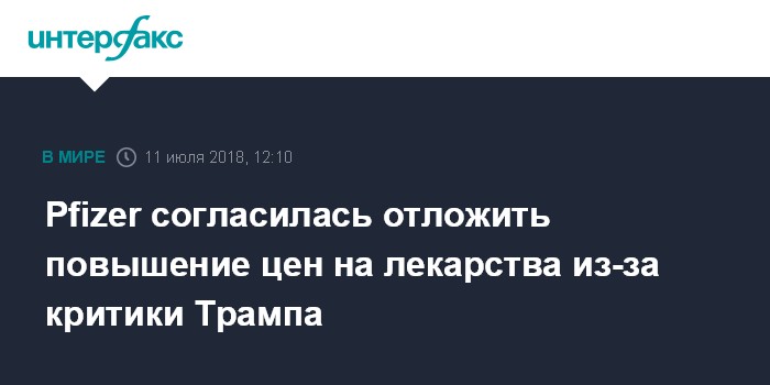 Pfizer согласилась отложить повышение цен на лекарства из-за критики Трампа