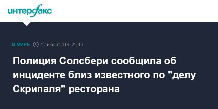 Полиция Солсбери сообщила об инциденте близ известного по "делу Скрипаля" ресторана
