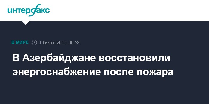 "Электроснабжение в Азербайджане полностью восстановлено. Ограничения, возникшие в системе из-за аварии, полностью устранены и обеспечение электроэнергией восстановлено на 100% с 20:20 по местному времени", - говорится в сообщении.