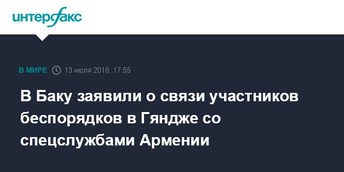 В Баку заявили о связи участников беспорядков в Гяндже со спецслужбами Армении