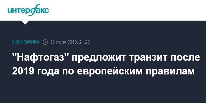 Москва. 13 июля. INTERFAX.RU - НАК "Нафтогаз Украины" выйдет на трехсторонние переговоры с РФ при участии Европейского Союза с предложением обеспечивать транзит природного газа по своей территории после 2019 года по европейским правилам, сообщил главный коммерческий директор компании Юрий Витренко.