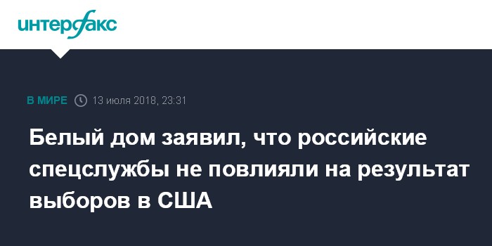 Москва. 13 июля. INTERFAX.RU - Российские спецслужбы, якобы осуществившие взлом компьютерной системы Демократической партии США, не повлияли на результат президентских выборов 2016 года, заявила заместитель пресс-секретаря Белого дома Линдси Уолтерс.