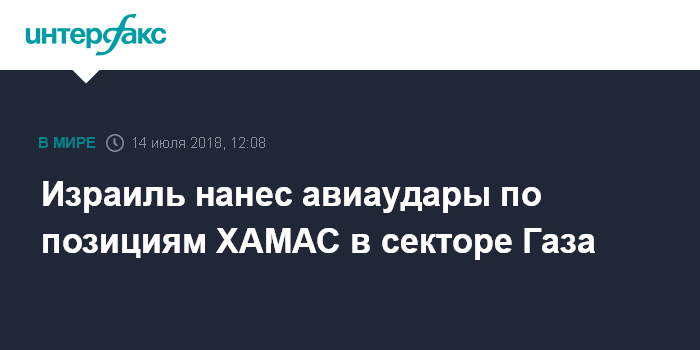 Москва. 14 июля. INTERFAX.RU - ВВС Израиля в ночь на субботу атаковали военные объекты палестинской группировки ХАМАС в секторе Газа, сообщает сайт издания The Jerusalem Post со ссылкой на заявление израильской армии.