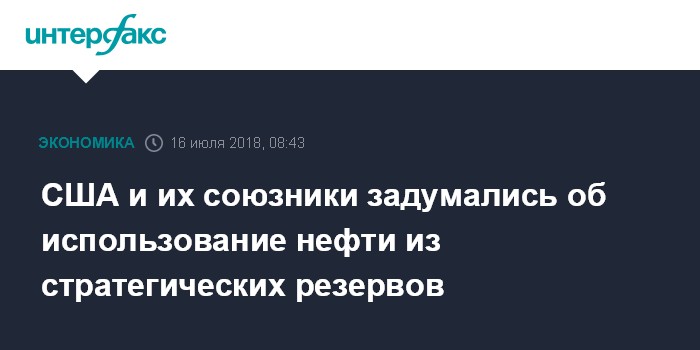 Москва. 16 июля. INTERFAX.RU - Американские и другие западные официальные лица рассматривают возможность использования нефти из стратегических резервов на случай, если рост ее предложения не сможет предотвратить в дальнейшем нового повышения цен, пишет The Wall Street Journal со ссылкой на свои источники.