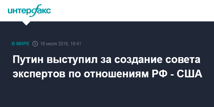 Москва. 16 июля. INTERFAX.RU - Москва предлагает Вашингтону создать экспертный совет для поиска точек соприкосновения и работать над философией выстраивания двусторонних отношений на долгосрочную перспективу, заявил президент России Владимир Путин.