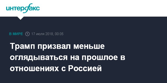 Москва. 16 июля. INTERFAX.RU - Президент США Дональд Трамп после встречи с Владимиром Путиным в Хельсинки заявил, что обеим странам стоит побольше думать о будущем и меньше - о прошлом.