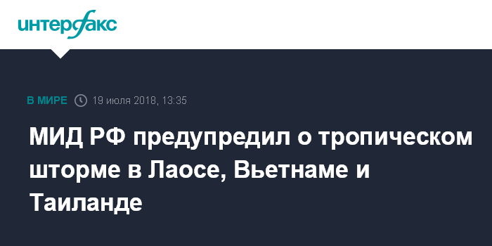 МИД РФ предупредил о тропическом шторме в Лаосе, Вьетнаме и Таиланде