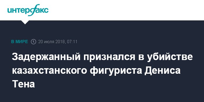 Москва. 20 июля. INTERFAX.RU - Задержанный в Алма-Ате по подозрению в убийстве фигуриста Дениса Тена признался в преступлении, сообщил в пятницу прокурор города Берик Жуйриктаев.