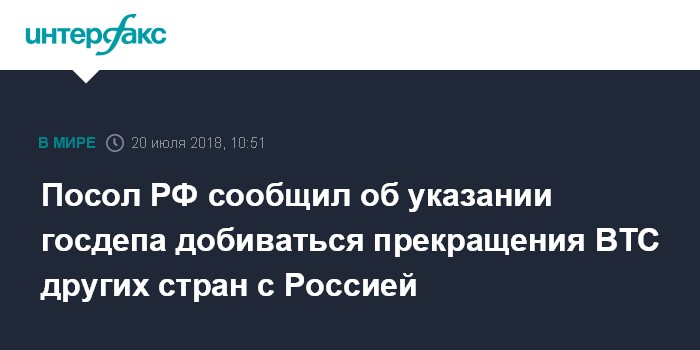 Посол РФ сообщил об указании госдепа добиваться прекращения ВТС других стран с Россией